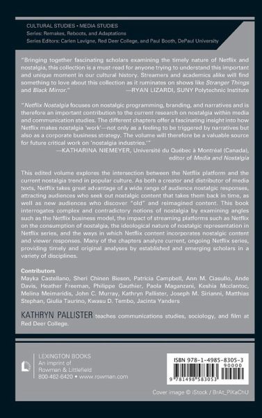 Netflix Nostalgia examines Netflix as both a creator and a distributor of nostalgic content, with contributions from scholars from around the world. The chapters examine the role of nostalgia in Netflix’s brand identity, ideological messages about nostalgia in Netflix content, and audience responses to nostalgia on the Netflix platform.