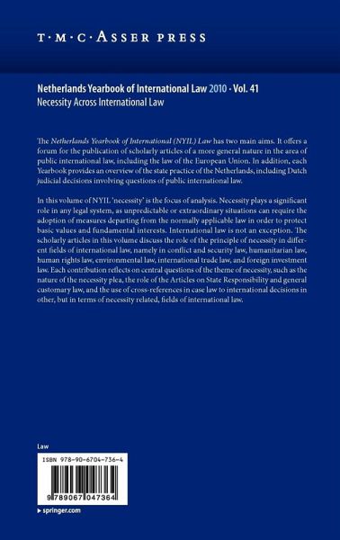 The Netherlands Yearbook of International Law was first published in 1970. It has two main aims. It offers a forum for the publication of scholarly articles of a more general nature in the area of public international law including the law of the European Union. In addition, it aims to respond to the demand for information on state practice in the field of international law. Each Yearbook therefore includes an overview of state practice of the Netherlands.