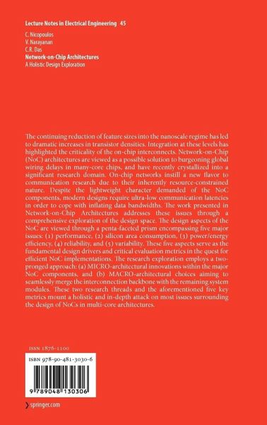 NoC architectures are seen as a possible solution to burgeoning global wiring delays in many-core chips, and this work deals with the main issues that need to be resolved in performance, energy efficiency, reliability, variability and silicon area consumption.