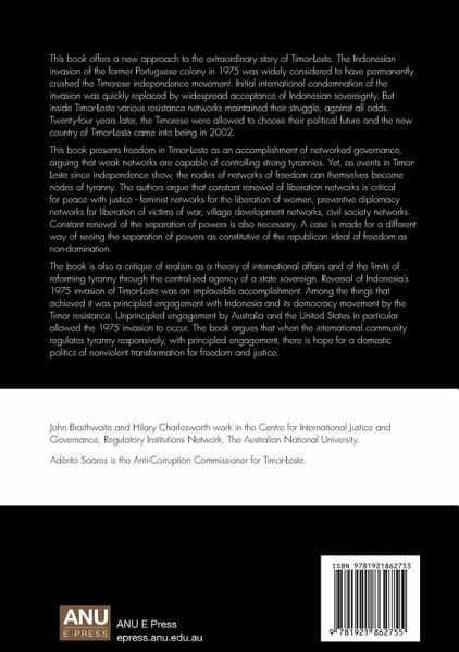 This book offers a new approach to the extraordinary story of Timor-Leste and presents freedom in Timor-Leste as an accomplishment of networked governance, arguing that weak networks are capable of controlling strong tyrannies. The book is also a critique of realism as a theory of international affairs.