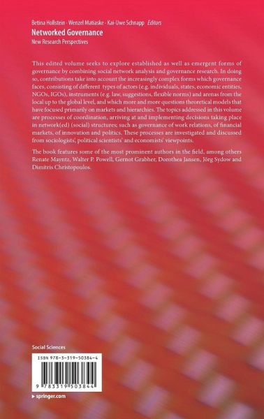 This edited volume seeks to explore established as well as emergent forms of governance by combining social network analysis and governance research. In doing so, contributions take into account the increasingly complex forms which governance faces, consisting of different types of actors (e.g. individuals, states, economic entities, NGOs, IGOs), instruments (e.g. law, suggestions, flexible norms) and arenas from the local up to the global level, and which more and more questions theoretical models that have focused primarily on markets and hierarchies. The topics addressed in this volume are processes of coordination, arriving at and implementing decisions taking place in network(ed) (social) structures; such as governance of work relations, of financial markets, of innovation and politics. These processes are investigated and discussed from sociologists', political scientists' and economists' viewpoints.