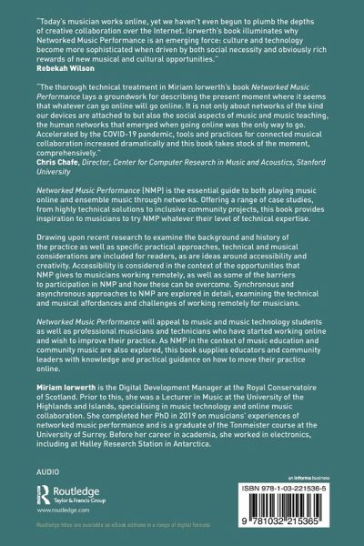 "Today's musician works online, yet we haven't even begun to plumb the depths of creative collaboration over the Internet. Iorwerth's book illuminates why Networked Music Performance is an emerging force: culture and technology become more sophisticated when driven by both social necessity and obviously rich rewards of new musical and cultural opportunities."