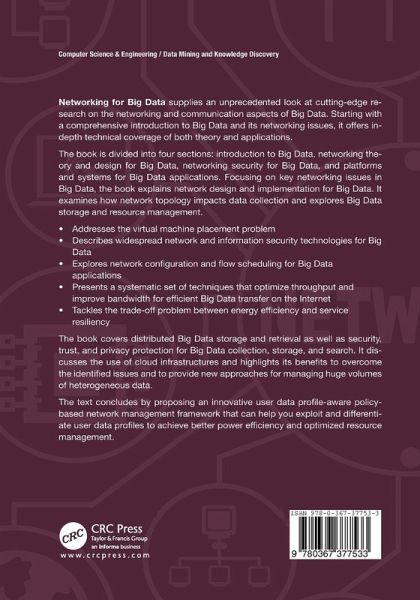 This book supplies an unprecedented look at the latest research on the networking and communication aspects of Big Data. Starting with a comprehensive introduction to Big Data and its networking issues, it offers deep technical coverage of both theory and applications. Focusing on key networking issues in Big Data, the book explains network design and implementation for Big Data. It covers distributed Big Data storage and retrieval as well as security, trust, and privacy protection for Big Data collection, storage, and search.