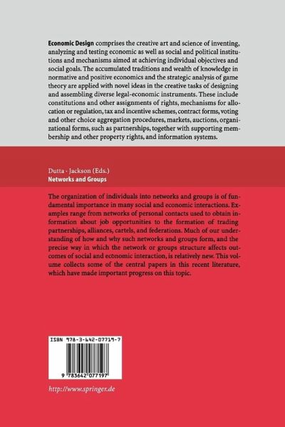 From the reviews: "A network is a very powerful tool for describing the structure of association among agents ... . This volume is indispensable for getting a comprehensive overview of this area of research. ... the volume is indeed very valuable for learning about the strategic aspects of group formation, especially network formation. ... beginning with the pioneering works a selection of the important subsequent research is included. Although this field is developing very rapidly, this book should remain a useful point of reference for a long time." (Anindya Bhattacharya, Social Choice and Welfare, Vol. 23 (1), 2004)