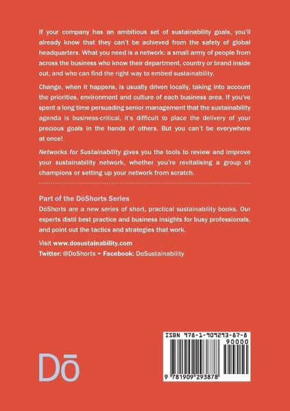If your company has an ambitious set of sustainability goals, you'll already know that they can't be achieved from the safety of global headquarters. What you need is a network: a small army of people from across the business who know their department, country or brand inside out, and who can find the right way to embed sustainability. Change, when it happens, is usually driven locally, taking into account the priorities, environment and culture of each business area. If you've spent a long time persuading senior management that the sustainability agenda is business-critical, it's difficult to place the delivery of your precious goals in the hands of others. But you can't be everywhere at once! Networks for Sustainability gives you the tools to review and improve your sustainability network, whether you're revitalizing a group of champions or setting up your network from scratch.
