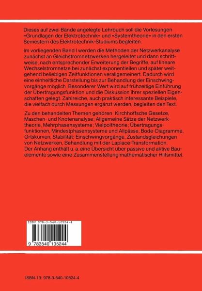 Untersuchung der Ortskurven sowie algebraische Stabilitatstests aufge nommen. Sehr ausfUhrlich werden dann Einschwingvorgange behandelt, wobei auch die Beschreibung der Netzwerke mit Zustandsgleichungen sowie deren Losung berUcksichtigt wurde. Die Untersuchung des Zeitverhaltens mit Hilfe der Laplace-Transformation wird ebenfalls eingehend dargestellt. 1m Anhang finden sich neben den bereits genannten Angaben zu physikali schen Phanomenen Abschnitte mit kurzen Erklarungen zu verwendeten ma thematischen Grundlagen. Der Band ist als Lehrbuch gedacht. Einem induktiven Vorgehen in der Be handlung des Stoffes wurde der Vorzug gegeben. Dementsprechend enthalt das Buch eine Vielzahl von Beispielen, bei deren Auswahl versucht wurde, weitgehend Schaltungen zu untersuchen, die auch eine praktische Bedeu tung haben. Zahlreiche MeBergebnisse werden dazu in Form von Oszillo grammen zur Illustration gebracht. Bei der Vorbereitung der Beispiele sowie beim Lesen der Korrektur haben mir Mitarbeiter des Lehrstuhls fUr Nachrichtentechnik geholfen, von de nen ich besonders die Herren Dr. Heute, Dr. Steffen und Dipl.-Ing. Weith nennen mochte. Die Reinschrift des Textes, die Anfertigung der zahlrei chen Zeichnungen und die photographischen Arbeiten haben Fraulein Schuster, Frau Felske und Frau WeiB Ubernommen. Ihnen allen gilt mein Dank. Ebenso mochte ich dem Springer-Verlag fUr die gute Zusammenarbeit danken.