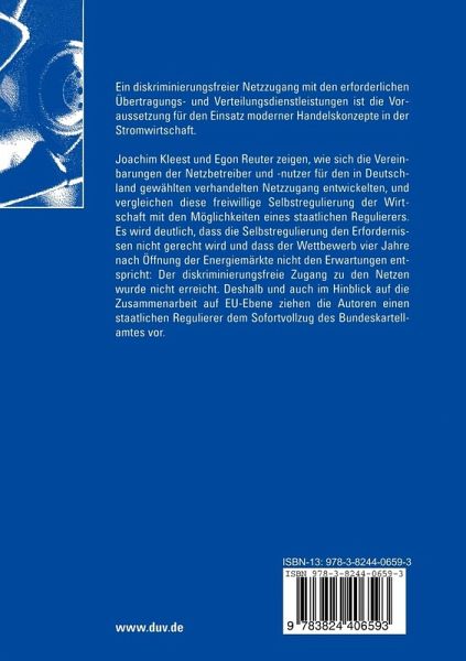 Joachim Kleest und Egon Reuter zeigen, wie sich die Vereinbarungen der Netzbetreiber und -nutzer für den in Deutschland gewählten verhandelten Netzzugang entwickelten, und vergleichen diese freiwillige Selbstregulierung der Wirtschaft mit den Möglichkeiten eines staatlichen Regulierers. Es wird deutlich, dass die Selbstregulierung den Erfordernissen nicht gerecht wird und dass der Wettbewerb vier Jahre nach Öffnung der Energiemärkte nicht den Erwartungen entspricht: Der diskriminierungsfreie Zugang zu den Netzen wurde nicht erreicht. Deshalb und auch im Hinblick auf die Zusammenarbeit auf EU-Ebene ziehen die Autoren einen staatlichen Regulierer dem Sofortvollzug des Bundeskartellamtes vor.