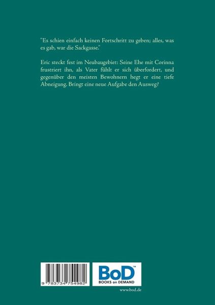 "Es schien einfach keinen Fortschritt zu geben; alles, was es gab, war die Sackgasse."Eric steckt fest im Neubaugebiet: Seine Ehe mit Corinna frustriert ihn, als Vater fühlt er sich überfordert, und gegenüber den meisten Bewohnern hegt er eine tiefe Abneigung. Bringt eine neue Aufgabe den Ausweg?