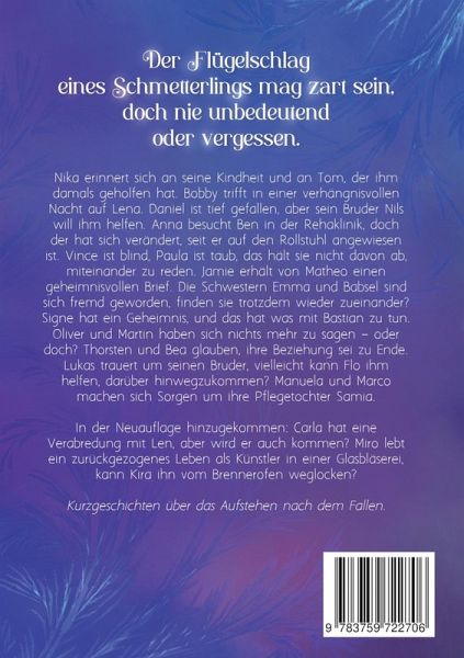 Herzergreifend und authentisch: Kurzgeschichten, die Mut machen. Diese bewegende Kurzgeschichten-Anthologie bringt vielschichtige Charaktere und ihre Herausforderungen ins Zentrum: Nika erinnert sich an seine Kindheit und die Hilfe von Tom. Bobby begegnet Lena in einer verhängnisvollen Nacht, während Daniel tief gefallen ist und auf die Unterstützung seines Bruders Nils setzt. Anna besucht Ben in der Rehaklinik und merkt, wie sehr er sich verändert hat. Vince und Paula überwinden ihre Barrieren ¿ er ist blind, sie taub ¿ und finden eine besondere Sprache der Nähe. Jamie erhält einen geheimnisvollen Brief von Matheo, und die Schwestern Emma und Babsel suchen nach einem Weg, sich wieder anzunähern. Von Carla und ihrer zarten Hoffnung auf ein Treffen mit Len bis zu Miro, der als Künstler in einer Glasbläserei lebt und sich von Kira aus der Einsamkeit locken lässt ¿ jede Geschichte erzählt von Verlust, Heilung und der Stärke, die wir in Verbindungen zueinander finden. Ideal für alle, die nach emotionalen, lebensnahen und herzerwärmenden Erzählungen suchen.