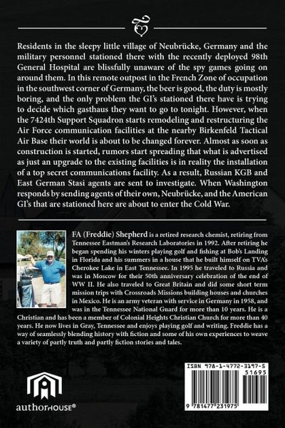 Residents in the sleepy little village of Neubrücke, Germany and the military personnel stationed there with the recently deployed 98th General Hospital are blissfully unaware of the spy games going on around them. In this remote outpost in the French Zone of occupation in the southwest corner of Germany, the beer is good, the duty is mostly boring, and the only problem the GI's stationed there have is trying to decide which gasthaus they want to go to tonight. However, when the 7424th Support Squadron starts remodeling and restructuring the Air Force communication facilities at the nearby Birkenfeld Tactical Air Base their world is about to be changed forever. Almost as soon as construction is started, rumors start spreading that what is advertised as just an upgrade to the existing facilities is in reality the installation of a top secret communications facility. As a result, Russian KGB and East German Stasi agents are sent to investigate. When Washington responds by sending agents of their own, Neubrücke, and the American GI's that are stationed here are about to enter the Cold War.