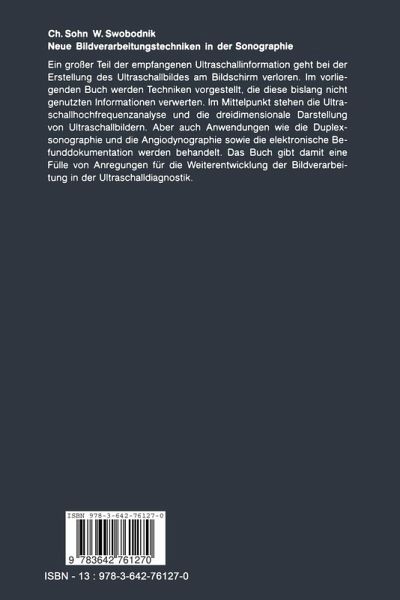 Ein großer Teil der empfangenen Ultraschallinformation geht bei der Erstellung des Ultraschallbildes am Bildschirm verloren. Im vorliegenden Buch werden Techniken vorgestellt, die diese bislang nicht genutzten Informationen verwerten. Im Mittelpunkt stehen die Ultraschallhochfrequenzanalyse und die dreidimensionale Darstellung von Ultraschallbildern. Aber auch Anwendungen wie die Duplexsonographie und die Angiodynographie sowie die elektronische Befunddokumentation werden behandelt. Das Buch gibt damit eine Fülle von Anregungen für die Weiterentwicklung der Bildverarbeitung in der Ultraschalldiagnostik.