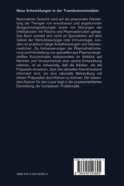 Infektabwehr mit Plasma und Plasmaderivaten gelegt. Das Buch