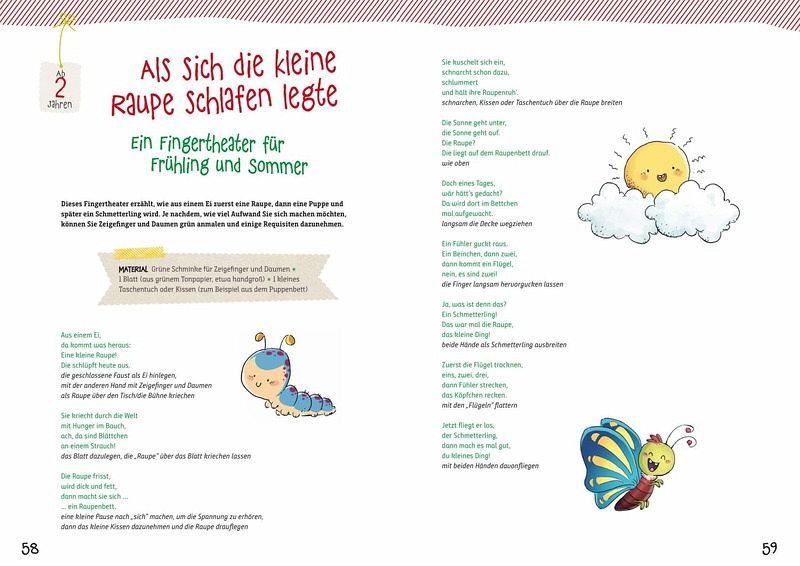 Die Fingerspiele in diesem Heft sind kurz genug, dass Krippenkinder nicht den Faden verlieren. Sie verwenden eine zeitgemäße Sprache und greifen Erlebnisse aus der direkten Erfahrungswelt der Kinder auf. Vor allem aber machen sie Riesenspaß!