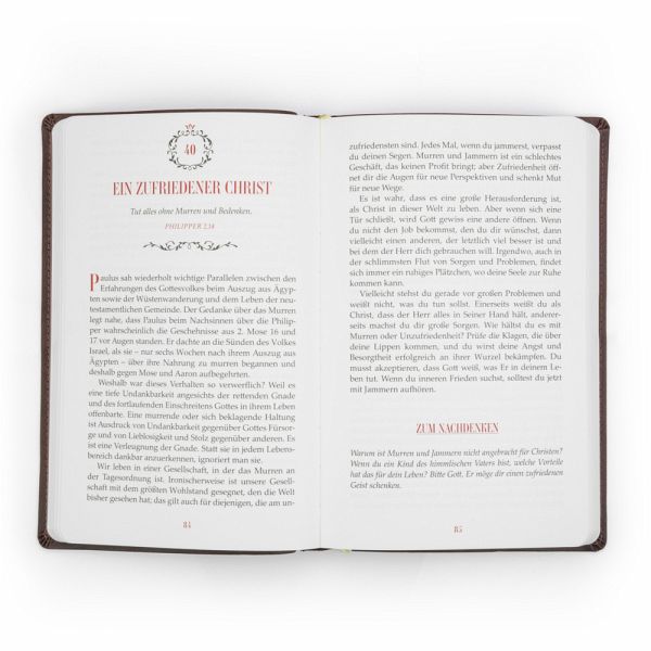 »In unserem stressigen Alltag müssen wir immer wieder an das befreiende Evangelium erinnert werden. Genau das schafft dieses Andachtsbuch. Ausgehend von einem Abschnitt aus der Bibel wird in persönlichen und ermutigenden Worten auf die Hoffnung hingewiesen, die wir in Jesus Christus haben. Die Fragen am Ende einer jeden Andacht helfen dabei, das Gelesene auf das eigene Leben anzuwenden und ein eigenes Gebet zu formulieren. Es eignet sich hervorragend, um sich in kurzen Pausen zwischendurch wieder neu an den kraftspendenden Wahrheiten auszurichten. Und: Es ist eine geniale Geschenkidee.«