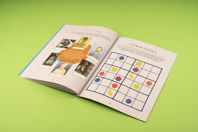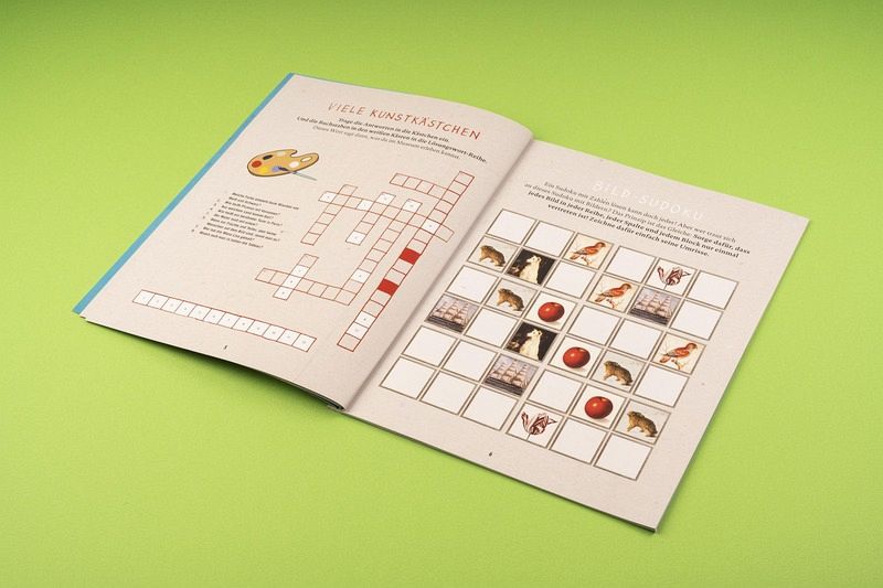 Labyrinthe, Puzzle, Kreuzworträtsel, Worte-Ergänzen, Malen nach Zahlen, Logik-Rätsel, Suchbilder, neue krasse Fragen - und alles in Zusammenhang mit Kunst! Die witzigen Aufgaben machen nicht nur Spaß, sondern helfen auch, mehr über Malerei und Architektur zu erfahren. Die Rätsel "Schwarz auf Weiß", "Tierische Versammlung" oder "Kunst-Sudoku" spielen mit Kunstgeschichte, haben unterschiedliche Schwierigkeitsgrade und bieten Unterhaltung für zahlreiche Stunden.