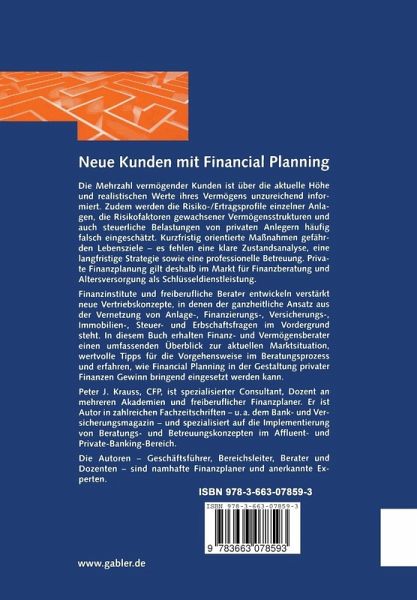 Peter J. Krauss, CFP, ist spezialisierter Consultant, Dozent an mehreren Akademien und freiberuflicher Finanzplaner. Er ist Autor in zahlreichen Fachzeitschriften - u. a. dem Bank- und Versicherungsmagazin - und spezialisiert auf die Implementierung von Beratungs- und Betreuungssystemen im Affluent- und Private-Banking-Bereich. Die Autoren - Geschäftsführer, Bereichsleiter, Berater und Dozenten - sind namhafte Finanzplaner und anerkannte Experten.