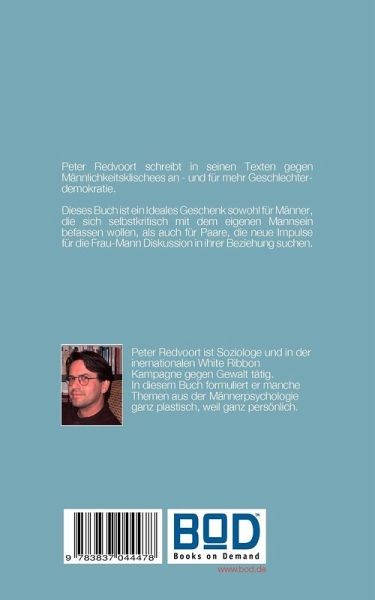 Peter Redvoort schreibt in seinen Texten gegen Männlichkeitsklischees an - und für mehr Geschlechterdemokratie.Dadurch ist dieses Buch ein ideales Geschenk sowohl für Männer, die sich selbstkritisch mit dem eigenen Mannsein befassen wollen, als auch für Paare, die neue Impulse für ihre Mann-Frau Diskussion suchen.