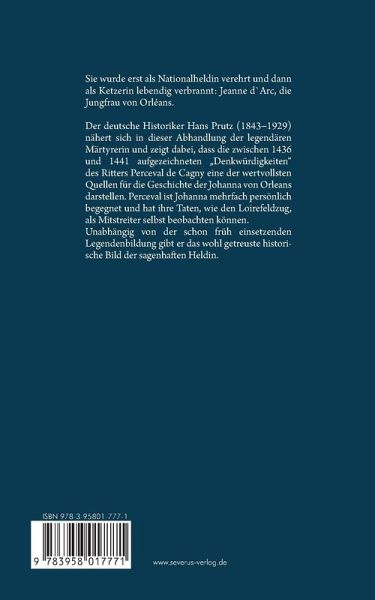 Sie wurde erst als Nationalheldin verehrt und dann als Ketzerin lebendig verbrannt: Jeanne d`Arc, die Jungfrau von Orléans. Der deutsche Historiker Hans Prutz (1843-1929) nähert sich in dieser Abhandlung der legendären Märtyrerin und zeigt dabei, dass die zwischen 1436 und 1441 aufgezeichneten "Denkwürdigkeiten" des Ritters Perceval de Cagny eine der wertvollsten Quellen für die Geschichte der Johanna von Orleans darstellen. Perceval ist Johanna mehrfach persönlich begegnet und hat ihre Taten, wie den Loirefeldzug, als Mitstreiter selbst beobachten können. Unabhängig von der schon früh einsetzenden Legendenbildung gibt er das wohl getreuste historische Bild der sagenhaften Heldin.