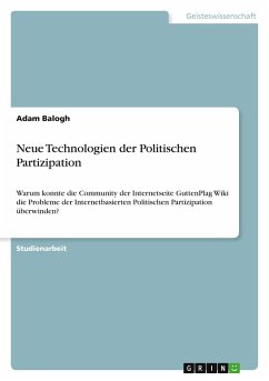 Studienarbeit aus dem Jahr 2012 im Fachbereich Soziologie - Politische Soziologie, Majoritäten, Minoritäten, Note: 1,3, Universität Mannheim (Fakultät für Sozialwissenschaften), Veranstaltung: Politisches Engagement und Partizipation im internationalen und historischen Vergleich, Sprache: Deutsch, Abstract: Angestoßen durch den Erfolg der Internetseite GuttenPlag Wiki sollte in dieser Hausarbeit eine Antwort auf folgende Frage gefunden werden:Warum konnte die Community der Internetseite GuttenPlag Wiki die Probleme der Internetbasierten Politischen Partizipation überwinden?
