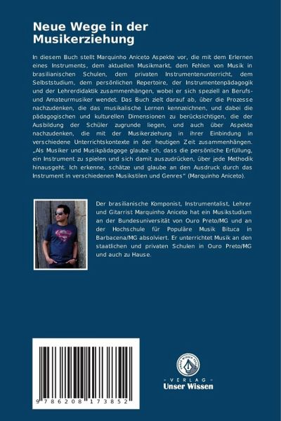 In diesem Buch stellt Marquinho Aniceto Aspekte vor, die mit dem Erlernen eines Instruments, dem aktuellen Musikmarkt, dem Fehlen von Musik in brasilianischen Schulen, dem privaten Instrumentenunterricht, dem Selbststudium, dem persönlichen Repertoire, der Instrumentenpädagogik und der Lehrerdidaktik zusammenhängen, wobei er sich speziell an Berufs- und Amateurmusiker wendet. Das Buch zielt darauf ab, über die Prozesse nachzudenken, die das musikalische Lernen kennzeichnen, und dabei die pädagogischen und kulturellen Dimensionen zu berücksichtigen, die der Ausbildung der Schüler zugrunde liegen, und auch über Aspekte nachzudenken, die mit der Musikerziehung in ihrer Einbindung in verschiedene Unterrichtskontexte in der heutigen Zeit zusammenhängen. "Als Musiker und Musikpädagoge glaube ich, dass die persönliche Erfüllung, ein Instrument zu spielen und sich damit auszudrücken, über jede Methodik hinausgeht. Ich erkenne, schätze und glaube an den Ausdruck durch das Instrument in verschiedenen Musikstilen und Genres" (Marquinho Aniceto).