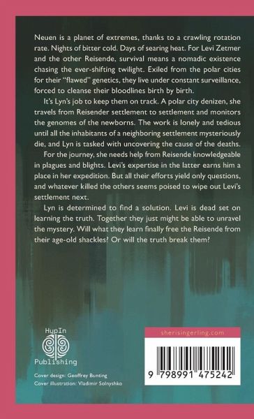 Neuen is a planet of extremes, thanks to a crawling rotation rate. Nights of bitter cold. Days of searing heat. For Levi Zetmer and the other Reisende, survival means a nomadic existence chasing the ever-shifting twilight. Exiled from the polar cities for their "flawed" genetics, they live under constant surveillance, forced to cleanse their bloodlines birth by birth. It's Lyn's job to keep them on track. A polar city denizen, she travels from Reisender settlement to settlement and monitors the genomes of the newborns. The work is lonely and tedious until all the inhabitants of a neighboring settlement mysteriously die, and Lyn is tasked with uncovering the cause of the deaths. For the journey, she needs help from Reisende knowledgeable in plagues and blights. Levi's expertise in the latter earns him a place in her expedition. But all their efforts yield only questions, and whatever killed the others seems poised to wipe out Levi's settlement next. Lyn is determined to find a solution. Levi is dead set on learning the truth. Together they just might be able to unravel the mystery. Will what they learn finally free the Reisende from their age-old shackles? Or will the truth break them? Neuen is a science fiction mystery with genetic engineering and botany. It is the second novel in the Alfom shared universe but is also a standalone read.