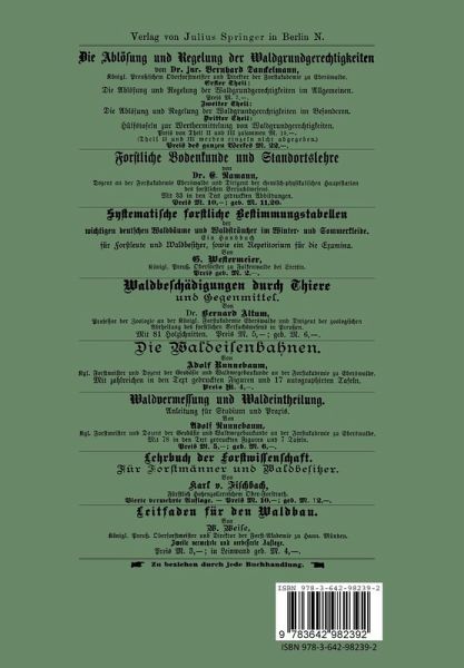 Es sind nunmehr 20 Jahre verflossen, seitdem die Ertrags untersuchungen in Kiefernbestanden begonnen haben und die ersten Durchforstungsversuche fUr diese Holzart in Preussen ein gerichtet worden sind. Fast gleichzeitig wurden bereits einzelne Versuche tiber den Einfluss del' Lichtungen eingeleitet, welche nach Aufstellung des diesbeztiglichen Arbeitsplanes von Seiten des Vereins deutscher forstlicher Versuchsanstalten eine Ver mehrung erfahren haben. 1m Jahre 1890 endlich ist als letztes Glied die Untersuchung del' technischen Eigenschaften des Kiefernholzes in Angrifl' ge nommen worden und zwar zunachst von Seiten del' Hauptstation allein durch Ermittlung des specifischen Gewichtes, seit 1892 abel' in Gemeinschaft mit del' mechanisch-technischen Versuchs anstalt zu Oharlottenburg, welch' letztere die Ermittlung del' Druckfestigkeit besorgt. N unmehr erscheint del' geeignete Zeitpunkt gekommen, um das wahrend zwei Decennien angesammelte Material zu bearbeiten und zu verofl'entlichen. Die vorliegende Arbeit bildet den ersten Theil diesel' Publi cation und beschaftigt sicl! mit del' Entwicklung del' geschlossenen, normalen Kiefernbestande unter dem Einfluss eines "massigen" Durchforstungsgrades, sie stellt zugleich eine theilweise Neubearbei tung meiner 1889 erschienenen Schrift "W achsthum und Ertrag normaler Kiefernbestande in del' norddeutschen Tiefebene" dar. Del' zweite Theil wird den Einfluss verschiedener Durch forstungsgrade und Lichtungshiebe und del' dritte die Ergebnisse del' Untersuchungen tiber die Holzqualitat behandeln. Diese beiden Abschnitte werden binnen J ahresfrist erscheinen. Eberswalde, im Marz 1896. Dr. Schwappach. Inhalt.