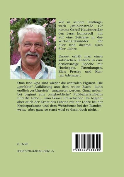 Wie in seinem Erstlingswerk "Mühlenstraße 12" nimmt Gerolf Haubenreißer den Leser humorvoll mit auf eine Zeitreise in das Wirtschaftswunder der 50er und diesmal auch 60er Jahre.Erneut erhält man einen satirischen Einblick in eine denkwürdige Epoche mit Huckepott, Tütenlampen, Elvis Presley und Konrad Adenauer. Oma und Opa sind wieder die zentralen Figuren. Die "perfekte" Aufklärung aus dem ersten Buch kann endlich "erfolgreich" umgesetzt werden. Ganz nebenbei beginnt eine "unglaubliche" Fußballerlaufbahn und die Liebe.....zum Peiner Freischießen. Es beginnt aber auch der Ernst des Lebens mit der Lehre bei der Kreissparkasse und dem Wehrdienst bei der Bundeswehr, aber ganz so ernst wird es dann doch nicht...