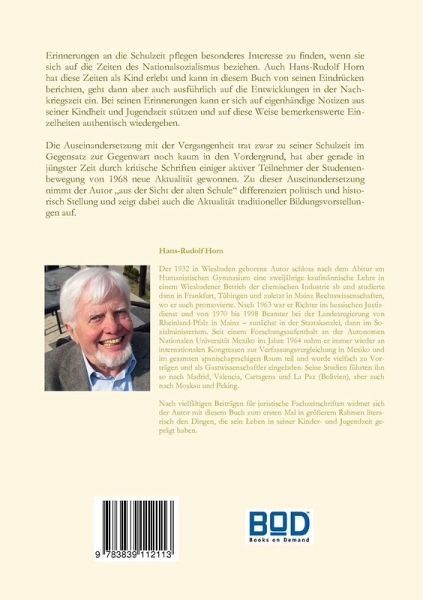 Erinnerungen an die Schulzeit pflegen besonderes Interesse zu finden, wenn sie sich auf die Zeiten des Nationalsozialismus beziehen. Auch Hans-Rudolf Horn hat diese Zeiten als Kind erlebt und kann in diesem Buch von seinen Eindrücken berichten, geht dann aber auch ausführlich auf die Entwicklungen in der Nachkriegszeit ein. Bei seinen Erinnerungen kann er sich auf eigenhändige Notizen aus seiner Kindheit und Jugendzeit stützen und auf diese Weise bemerkenswerte Einzelheiten authentisch wiedergeben. Die Auseinandersetzung mit der Vergangenheit trat zwar zu seiner Schul-zeit im Gegensatz zur Gegenwart noch kaum in den Vordergrund, hat aber gerade in jüngster Zeit durch kritische Schriften einiger aktiver Teil-nehmer der Studentenbewegung von 1968 neue Aktualität gewonnen. Zu dieser Auseinandersetzung nimmt der Autor "aus der Sicht der alten Schule" differenziert politisch und historisch Stellung und zeigt dabei auch die Aktualität traditioneller Bildungsvorstellungen auf.