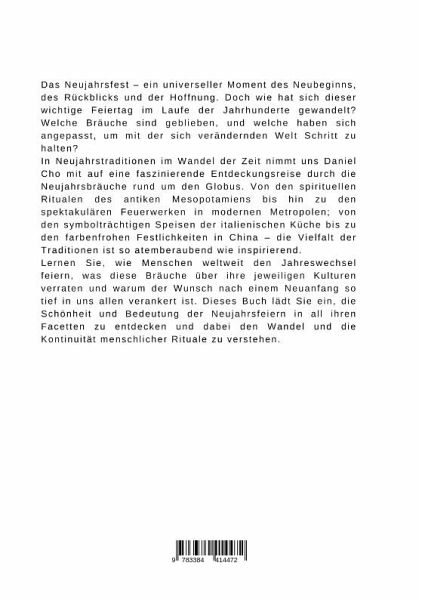 Das Neujahrsfest - ein universeller Moment des Neubeginns, des Rückblicks und der Hoffnung. Doch wie hat sich dieser wichtige Feiertag im Laufe der Jahrhunderte gewandelt? Welche Bräuche sind geblieben, und welche haben sich angepasst, um mit der sich verändernden Welt Schritt zu halten?In Neujahrstraditionen im Wandel der Zeit nimmt uns Daniel Cho mit auf eine faszinierende Entdeckungsreise durch die Neujahrsbräuche rund um den Globus. Von den spirituellen Ritualen des antiken Mesopotamiens bis hin zu den spektakulären Feuerwerken in modernen Metropolen; von den symbolträchtigen Speisen der italienischen Küche bis zu den farbenfrohen Festlichkeiten in China - die Vielfalt der Traditionen ist so atemberaubend wie inspirierend.Lernen Sie, wie Menschen weltweit den Jahreswechsel feiern, was diese Bräuche über ihre jeweiligen Kulturen verraten und warum der Wunsch nach einem Neuanfang so tief in uns allen verankert ist. Dieses Buch lädt Sie ein, die Schönheit und Bedeutung der Neujahrsfeiern in all ihren Facetten zu entdecken und dabei den Wandel und die Kontinuität menschlicher Rituale zu verstehen.