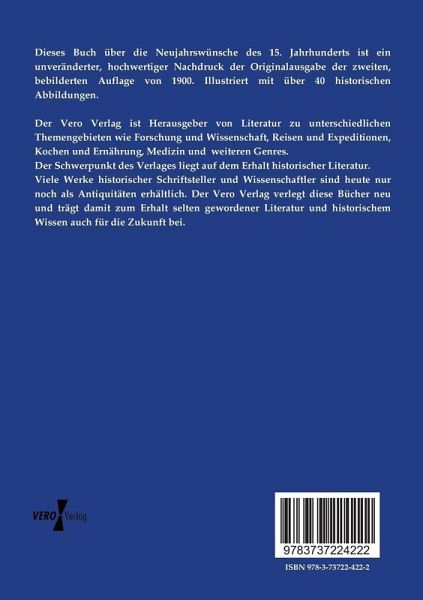 Dieses Buch über die Neujahrswünsche des 15. Jahrhunderts ist ein unveränderter, hochwertiger Nachdruck der Originalausgabe der zweiten, bebilderten Auflage von 1900. Illustriert mit über 40 historischen Abbildungen.