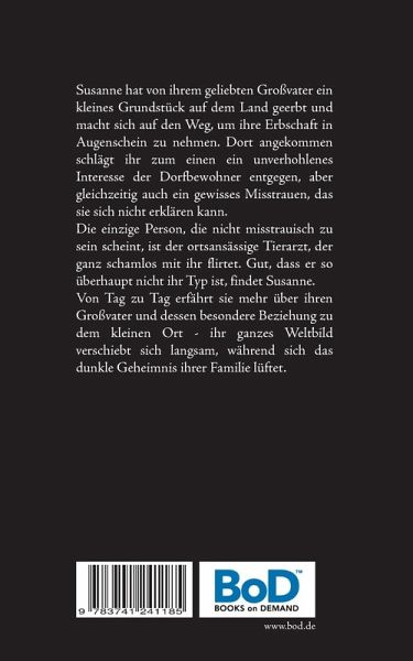 Susanne hat von ihrem geliebten Großvater ein kleines Grundstück auf dem Land geerbt und macht sich auf den Weg, um ihre Erbschaft in Augenschein zu nehmen. Dort angekommen schlägt ihr zum einen ein unverhohlenes Interesse der Dorfbewohner entgegen, aber gleichzeitig auch ein gewisses Misstrauen, das sie sich nicht erklären kann. Die einzige Person, die nicht misstrauisch zu sein scheint, ist der ortsansässige Tierarzt, der ganz schamlos mit ihr flirtet. Gut, dass er so überhaupt nicht ihr Typ ist, findet Susanne. Von Tag zu Tag erfährt sie mehr über ihren Großvater und dessen besondere Beziehung zu dem kleinen Ort - ihr ganzes Weltbild verschiebt sich langsam, während sich das dunkle Geheimnis ihrer Familie lüftet.