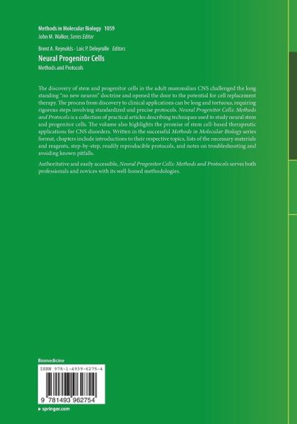 The discovery of stem and progenitor cells in the adult mammalian CNS challenged the long standing "no new neuron" doctrine and opened the door to the potential for cell replacement therapy. The process from discovery to clinical applications can be long and tortuous, requiring rigorous steps involving standardized and precise protocols. Neural Progenitor Cells: Methods and Protocols is a collection of practical articles describing techniques used to study neural stem and progenitor cells. The volume also highlights the promise of stem cell-based therapeutic applications for CNS disorders. Written in the successful Methods in Molecular Biology series format, chapters include introductions to their respective topics, lists of the necessary materials and reagents, step-by-step, readily reproducible protocols, and notes on troubleshooting and avoiding known pitfalls.