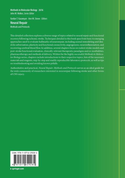 This detailed collection explores a diverse range of topics related to neural repair and functional recovery following ischemic stroke. Techniques detailed in this book span from basic to emerging approaches used to evaluate hallmarks of neurorepair, including axonal remodeling and dendritic arborization, plasticity and functional connectivity, angiogenesis, neuroinflammation, and recovering cerebral blood flow. In addition, several chapters focus on rodent stroke models and post-stroke functional evaluation, clinically-relevant therapeutic paradigms and co-morbidities, pharmacotherapy and methods of delivery. Written for the highly successful Methods in Molecular Biology series, chapters include introductions to their respective topics, lists of the necessary materials and reagents, step-by-step and readily reproducible laboratory protocols, as well as tips on troubleshooting and avoiding known pitfalls. Authoritative and practical, Neural Repair: Methods and Protocols serves as an ideal guide for the wide community of researchers interested in neurorepair following stroke and other forms of CNS injury.