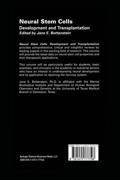 Neural Stem Cell Models of Development and Disease.- Neural Stem and Progenitor Cells: Lineage and Cell Fate Determination.- Stage-Specific and Cell Fate Markers.- Isolation of Stem Cells from Multiple Sites in the CNS.- Neural Cells Derived From Embryonic Stem Cells.- On the Origin of Newly Made Neural Cells in the Adult Organism: Does Transdifferentiation Occur?.- Neural Stem Cell Purification and Clonal Analysis.- Embryonic and Neural Stem Cell Lines.- Isolation, Survival, Proliferation, and Differentiation of Human Neural Stem Cells.- Neuronal Replacement by Transplantation.- Derivation of Myelin-forming Cells for Transplantation Repair of the CNS.- Induction of Adult Cortical Neurogenesis From Neural Precursors In Situ.- Neural Stem Cells for Cellular Therapy in Humans.- Genetic Modification of Neural Stem/Progenitor Cells.
