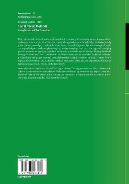 Essential and authoritative, Neural Tracing Methods: Tracing Neurons and Their Connections collects a comprehensive compilation of chapters authored by inventors and expert users, that describes state-of-the-art neuronal tracing and functional analysis methods in order to aid researchers in continuing this vital pathway of study.