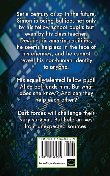 Set a century or so within the future, Simon, a child prodigy, is being bullied, not only by his fellow school students but even by his class teacher. In spite of his remarkable abilities, he appears helpless in the face of his enemies who grow more violent in their attacks, and he can not reveal his non-human identification to anyone. His similarly talented fellow pupil Alice befriends him. What does she know? Can they help each other? Dark forces, led by a mysterious cleric, will challenge their very survival. But help arrives from unexpected sources.