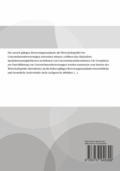 Die zurzeit gültigen Bewertungsstandards, die Wirtschaftsprüfer bei Unternehmensbewertungen anwenden müssen, eröffnen den Aktionären Spekulationsmöglichkeiten im Rahmen von Unternehmensübernahmen. Die Grundsätze zur Durchführung von Unternehmensbewertungen werden momentan vom Institut der Wirtschaftsprüfer überarbeitet, da die bisher gültigen Bewertungsstandards wirtschaftliche und steuerliche Sachverhalte nicht sachgerecht abbilden. Die Berücksichtigung dieser in Kürze in Kraft tretenden Veränderungen werden in der Tendenz zur Ermittlung niedrigerer Abfindungen führen, nach Einschätzung von Experten zwischen 20 und 30 Prozent.