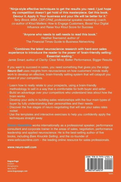 Anyone involved in sales faces huge challenges these days, from fierce global competition and increased pressure on margins to the power of internet-savvy buyers and difficulties with getting time with prospective buyers. To succeed in sales, something more than the traditional techniques is needed. Neuro-Sell presents an effective, brain-based approach to selling that is sensitive to what's going on in the customer's mind. Neuro-Sell helps readers understand the importance of the unconscious and get below the surface of what people say to recognise what they really mean. Packed with examples, quizzes, templates and interactive exercises, it develops readers' skills in building sales relationships with the four main types of buyer and outlines the five stages of neuro-negotiating that will help give readers the competitive edge.