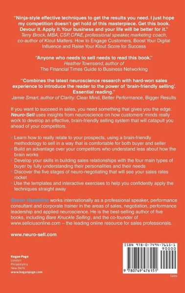 Anyone involved in sales faces huge challenges these days, from fierce global competition and increased pressure on margins to the power of internet-savvy buyers and difficulties with getting time with prospective buyers. To succeed in sales, something more than the traditional techniques is needed. Neuro-Sell presents an effective, brain-based approach to selling that is sensitive to what's going on in the customer's mind. Neuro-Sell helps readers understand the importance of the unconscious and get below the surface of what people say to recognise what they really mean. Packed with examples, quizzes, templates and interactive exercises, it develops readers' skills in building sales relationships with the four main types of buyer and outlines the five stages of neuro-negotiating that will help give readers the competitive edge.
