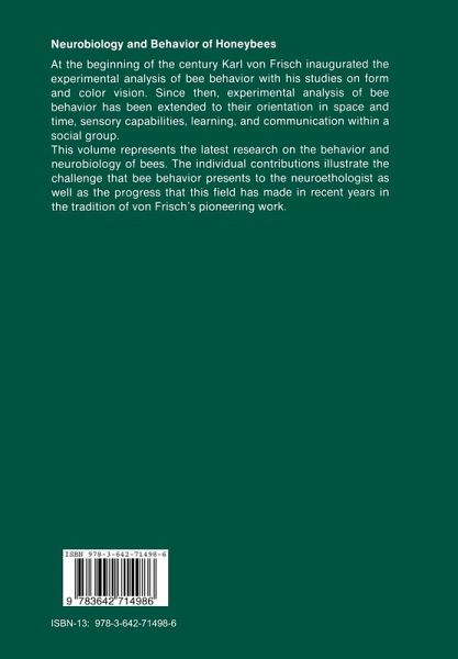 At the beginning of the century, Karl von Frisch inaugurated the experimental analysis of bee behavior with his studies on form and color vision. Since then, experimental analysis of bee behavior has been extended to their orientation in space and time, sensory capabilities, and communication within a social group. How does a creature with a brain volume of scarcely one cubic millimeter generate such varied and complex behavior? This volume represents the latest research on the behavior and neurobiology of bees. Topics include: dance communication, foraging and search behavior, decision…mehr
