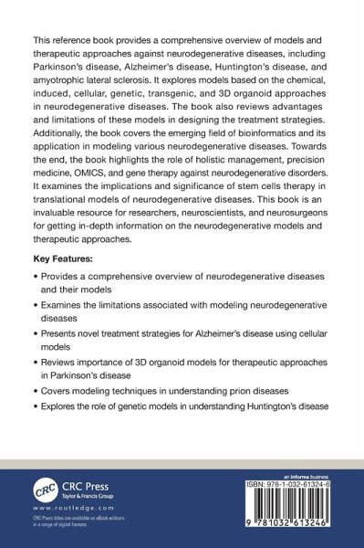 This reference book provides a comprehensive overview of models and therapeutic approaches against neurodegenerative diseases, including Parkinson's disease, Alzheimer's disease, Huntington's disease, and Amyotrophic lateral sclerosis.