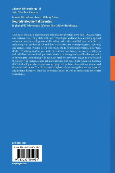 This book contains a compendium of induced pluripotent stem cells (iPSCs) articles and reviews concerning state of the art technologies and how they are being applied to human neurodevelopmental disorders. With the establishment of effective technologies to produce iPSCs and their derivatives, like neural precursors, neurons, and glia, researchers have new platforms to study neurodevelopmental disorders. iPSC technology enables researchers to study how human neurons develop in individuals with neurodevelopmental disorders, providing an unparalleled opportunity to investigate their etiology. In turn, researchers have now begun to understand the underlying molecular and cellular pathways that contribute to human diseases. iPSCs technologies also provide an emerging tool for future translational studies and disease classification. The chapters will emphasize how among the diverse idiopathic and genetic disorders, there are common clinical as well as cellular andmolecular phenotypes.