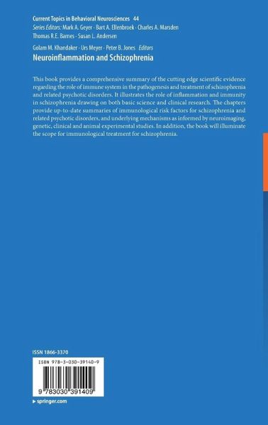 This book provides a comprehensive summary of the cutting edge scientific evidence regarding the role of immune system in the pathogenesis and treatment of schizophrenia and related psychotic disorders. It illustrates the role of inflammation and immunity in schizophrenia drawing on both basic science and clinical research. The chapters provide up-to-date summaries of immunological risk factors for schizophrenia and related psychotic disorders, and underlying mechanisms as informed by neuroimaging, genetic, clinical and animal experimental studies. In addition, the book will illuminate the scope for immunological treatment for schizophrenia.