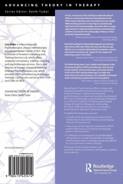 Neurolinguistic Psychotherapy offers a unique and exciting postmodern perspective on an advancing model of therapy. It places neurolinguistic psychotherapy in context and considers the history of NLP and its relationship to psychotherapy. Presented as an effective model for facilitating neurological change through the therapeutic relationship, this book challenges therapists to incorporate a psychodynamic approach within their work. In addition the book also presents: A model of the developing personality and the relationship to attachment theory and emerging theories of neuroscience. A discussion of the linguistic components of NLP and the effectiveness of utilising the language patterns offered by NLP. A challenge to neurolinguistic psychotherapists - asking them to consider the benefits of including relational approaches to therapy above that offered by a programmatic model of change. This book will be of great interest to all psychotherapeutic practitioners and trainers, students and academics.