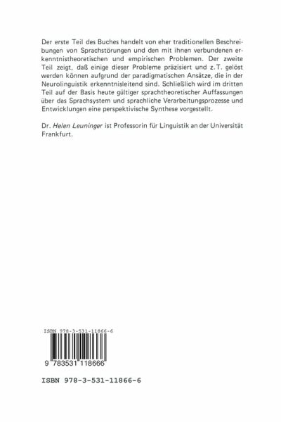 Der erste Teil des Buches handelt von eher traditionellen Beschreibungen von Sprachstörungen und den mit ihnen verbundenen erkenntnistheoretischen und empirischen Problemen. Der zweite Teil zeigt, daß einige dieser Probleme präzisiert und z.T. gelöst werden konnten aufgrund der paradigmatischen Ansätze, die heute in der Neurolinguistik erkenntnisleitend sind. Schließlich wird im dritten Teil unter Zugrundelegung heute gültiger sprachtheoretischer Auffassungen über das Sprachsystem und sprachliche Verarbeitungsprozesse und Entwicklungen eine perspektivische Synthese vorgestellt. Das Buch enthält eine ausführliche Literaturliste mit neuesten Publikationen, einen Sachindex und ein Register, in dem die wichtigsten Begriffe erklärt werden."(...) Das Buch eignet sich vorzüglich als Lektüre für Linguisten, die sich im Rahmen linguistischer Theoriebildung mit Aphasie beschäftigen möchten. Es würde sich andererseits auch gut für Sprachtherapeuten eignen, die sich über neuere Entwicklungen der Linguistik informieren möchten, die für das Studium der Sprachstörungen relevant sind. Es ist zu hoffen, daß das Buch nicht zuletzt auch an den verschiedenen Ausbildungsstätten für Sprachtherapeuten die Beachtung findet, die es verdient."Neurolinguistik 2/89