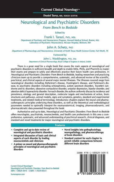 "...a comprehensive and systematic cover of the basic and clinical aspects of the main psychiatric and neurological disorders..." - Human Psychopharmacology