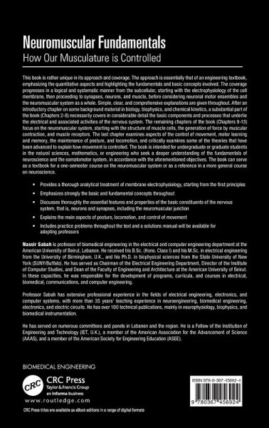 This book is rather unique in its approach and coverage. The approach is essentially that of an engineering textbook, emphasizing the quantitative aspects and highlighting the fundamentals and basic concepts involved. The coverage progresses in a logical and systematic manner from the subcellular, starting with the electrophysiology of the cell membrane, then proceeding to synapses, neurons, and muscle, before considering neuronal motor ensembles and the neuromuscular system as a whole. Simple, clear, and comprehensive explanations are given throughout. After an introductory chapter on some background material in biology, biophysics, and chemical kinetics, a substantial part of the book (Chapters 2-8) necessarily covers in considerable detail the basic components and processes that underlie the electrical and associated activities of the nervous system. The remaining chapters of the book (Chapters 9-13) focus on the neuromuscular system, starting with the structure of muscle cells, the generation of force by muscular contraction, and muscle receptors. The last chapter examines aspects of the control of movement, motor learning and memory, the maintenance of posture, and locomotion, and critically examines some of the theories that have been advanced to explain how movement is controlled. The book is intended for undergraduate or graduate students in the natural sciences, mathematics, or engineering who seek a deeper understanding of the fundamentals of neuroscience and the somatomotor system, in accordance with the aforementioned objectives. The book can serve as a textbook for a one-semester course on the neuromuscular system or as a reference in a more general course on neuroscience. Provides a thorough analytical treatment of membrane electrophysiology, starting from the first principles Emphasizes strongly the basic and fundamental concepts throughout Discusses thoroughly the essential features and properties of the basic constituents of the nervous system, that is, neurons and synapses, including the neuromuscular junction Explains the main aspects of posture, locomotion, and control of movement Includes practice problems throughout the text and a solutions manual will be available for adopting professors Nassir Sabah is professor of biomedical engineering in the electrical and computer engineering department at the American University of Beirut, Lebanon. He received his B.Sc. (Hons. Class I) and his M.Sc. in electrical engineering from the University of Birmingham, U.K., and his Ph.D. in biophysical sciences from the State University of New York (SUNY/Buffalo). He has served as Chairman of the Electrical Engineering Department, Director of the Institute of Computer Studies, and Dean of the Faculty of Engineering and Architecture at the American University of Beirut. In these capacities, he was responsible for the development of programs, curricula, and courses in electrical, biomedical, communications, and computer engineering. Professor Sabah has extensive professional experience in the fields of electrical engineering, electronics, and computer systems, with more than 35 years' teaching experience in neuroengineering, biomedical engineering, electronics, and electric circuits. He has over 100 technical publications, mainly in neurophysiology, biophysics, and biomedical instrumentation. He has served on numerous committees and panels in Lebanon and the region. He is a Fellow of the Institution of Engineering and Technology (IET, U.K.), a member of the American Association for the Advancement of Science (AAAS), and a member of the American Society for Engineering Education (ASEE).