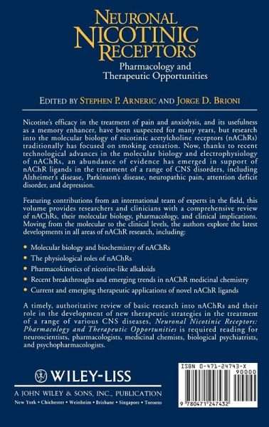 Neuronal Nicotinic Receptors: Pharmacology and Therapeutic Opportunities Edited by Stephen P. Arneric and Jorge D. Brioni Nicotine's efficacy in the treatment of pain and anxiolysis, and its usefulness as a memory enhancer, have been suspected for many years, but research into the molecular biology of nicotinic acetylcholine receptors (nAChRs) traditionally has focused on smoking cessation. Now, thanks to recent technological advances in the molecular biology and electrophysiology of nAChRs, an abundance of evidence has emerged in support of nAChR ligands in the treatment of a range of CNS disorders, including Alzheimer's disease, Parkinson's disease, neuropathic pain, attention deficit disorder, and depression. Featuring contributions from an international team of experts in the field, this volume provides researchers and clinicians with a comprehensive review of nAChRs, their molecular biology, pharmacology, and clinical implications. Moving from the molecular to the clinical levels, the authors explore the latest developments in all areas of nAChR research, including: * Molecular biology and biochemistry of nAChRs * The physiological roles of nAChRs * Pharmacokinetics of nicotine-like alkaloids * Recent breakthroughs and emerging trends in nAChR medicinal chemistry * Current and emerging therapeutic applications of novel nAChR ligands. A timely, authoritative review of basic research into nAChRs and their role in the development of new therapeutic strategies in the treatment of a range of various CNS diseases, Neuronal Nicotinic Receptors: Pharmacology and Therapeutic Opportunities is required reading for neuroscientists, pharmacologists, medicinal chemists, biological psychiatrists, and psychopharmacologists.