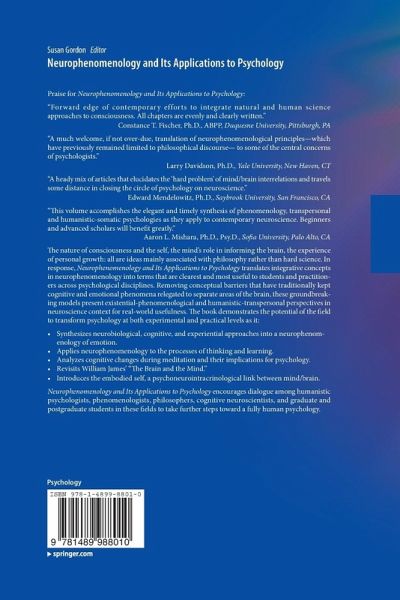 "Susan Gordon has produced a timely book with her new volume on Neurophenomenology. Neurophenomenology is a hot topic within philosophy and neuroscience, yet its assimilation within mainstream psychology is lagging. This book attempts to bridge the gap between philosophical neurophenomenology and such psychological domains as cognition, emotion, learning, pedagogy, meditation, and psychoneuroimmunology. The book also establishes the kinship of neurophenomenology with humanistic psychology, William James' radical empiricism, and transpersonal psychology." (Don Moss, Ph.D., Dean, College of Integrative Medicine and Health Sciences, Chair, School, of Mind-Body Medicine, Saybrook University, Oakland, CA, The Humanistic Psychologist, 43(1))