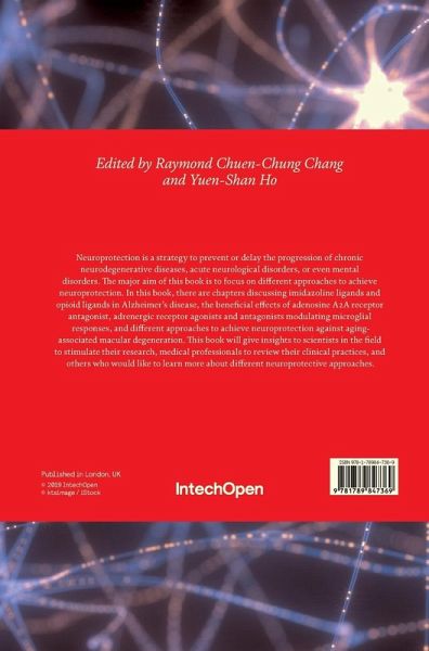 Neuroprotection is a strategy to prevent or delay the progression of chronic neurodegenerative diseases, acute neurological disorders, or even mental disorders. The major aim of this book is to focus on different approaches to achieve neuroprotection. In this book, there are chapters discussing imidazoline ligands and opioid ligands in Alzheimer's disease, the beneficial effects of adenosine A2A receptor antagonist, adrenergic receptor agonists and antagonists modulating microglial responses, and different approaches to achieve neuroprotection against aging-associated macular degeneration. This book will give insights to scientists in the field to stimulate their research, medical professionals to review their clinical practices, and others who would like to learn more about different neuroprotective approaches.